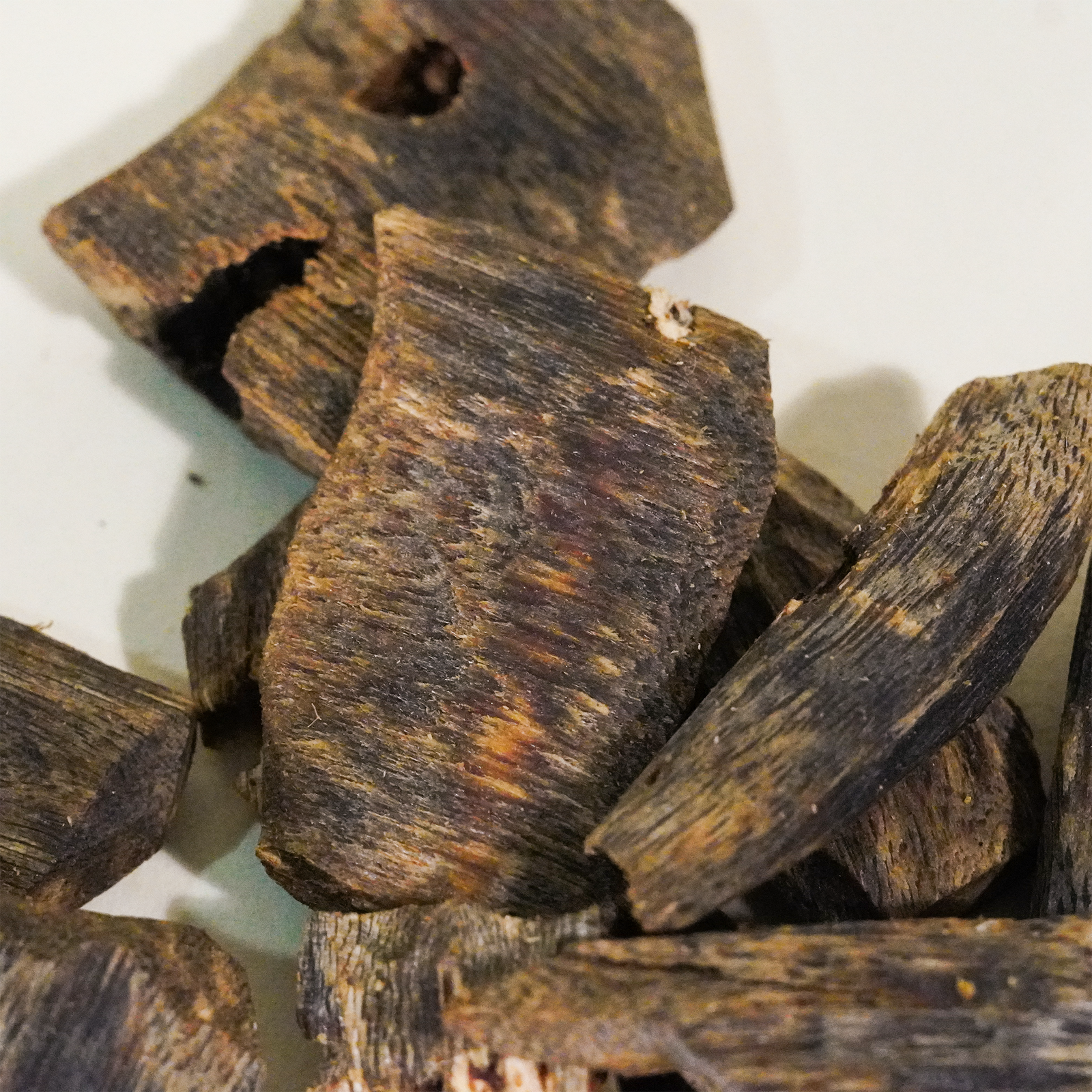 From 7-year-old oudwood trees, with a medium-to-high linalool content and high oil content, offering a rich, long-lasting flavor and a dark appearance.